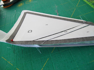 8. Using the smallest stitch available on your machine, sew along the seam line between sections 1 and 2, paper facing up.